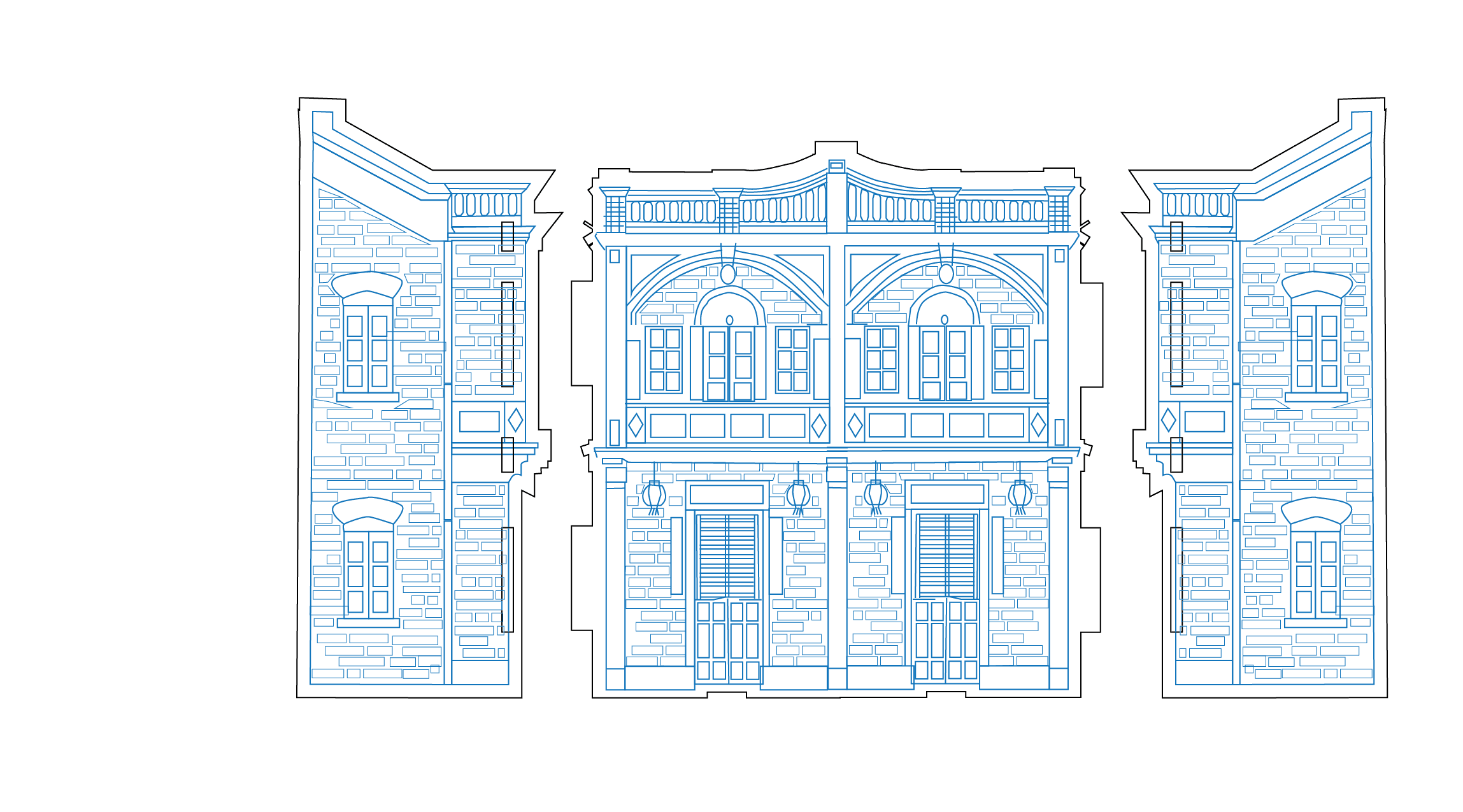 After gathering the images of the locations, through the usage of Adobe Illustrator, vectorized the outline of the buildings.